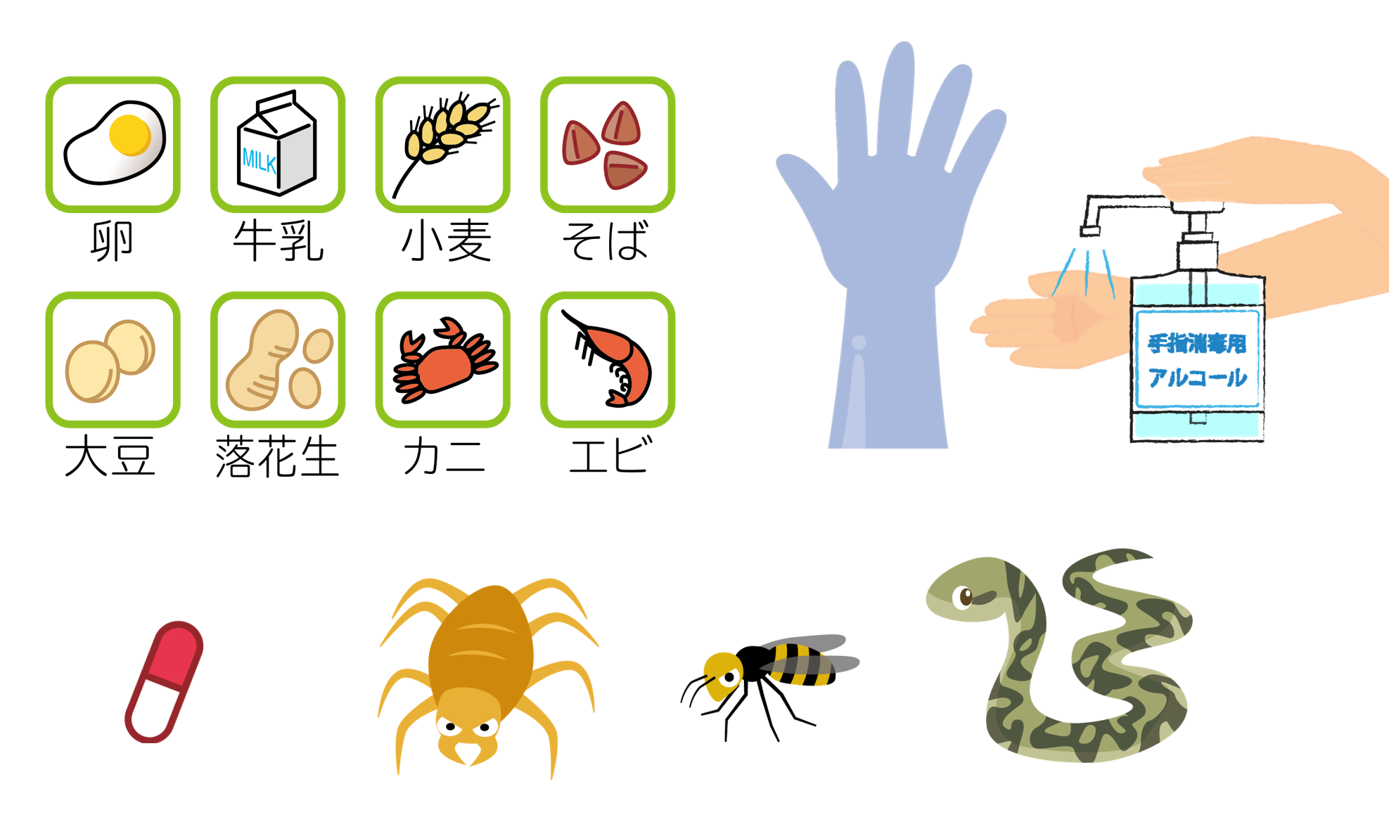 中でも、アナフィラキシーショックと呼ばれるショック状態になると、血圧が低下したり、意識状態が悪くなりますので、とても危険です。