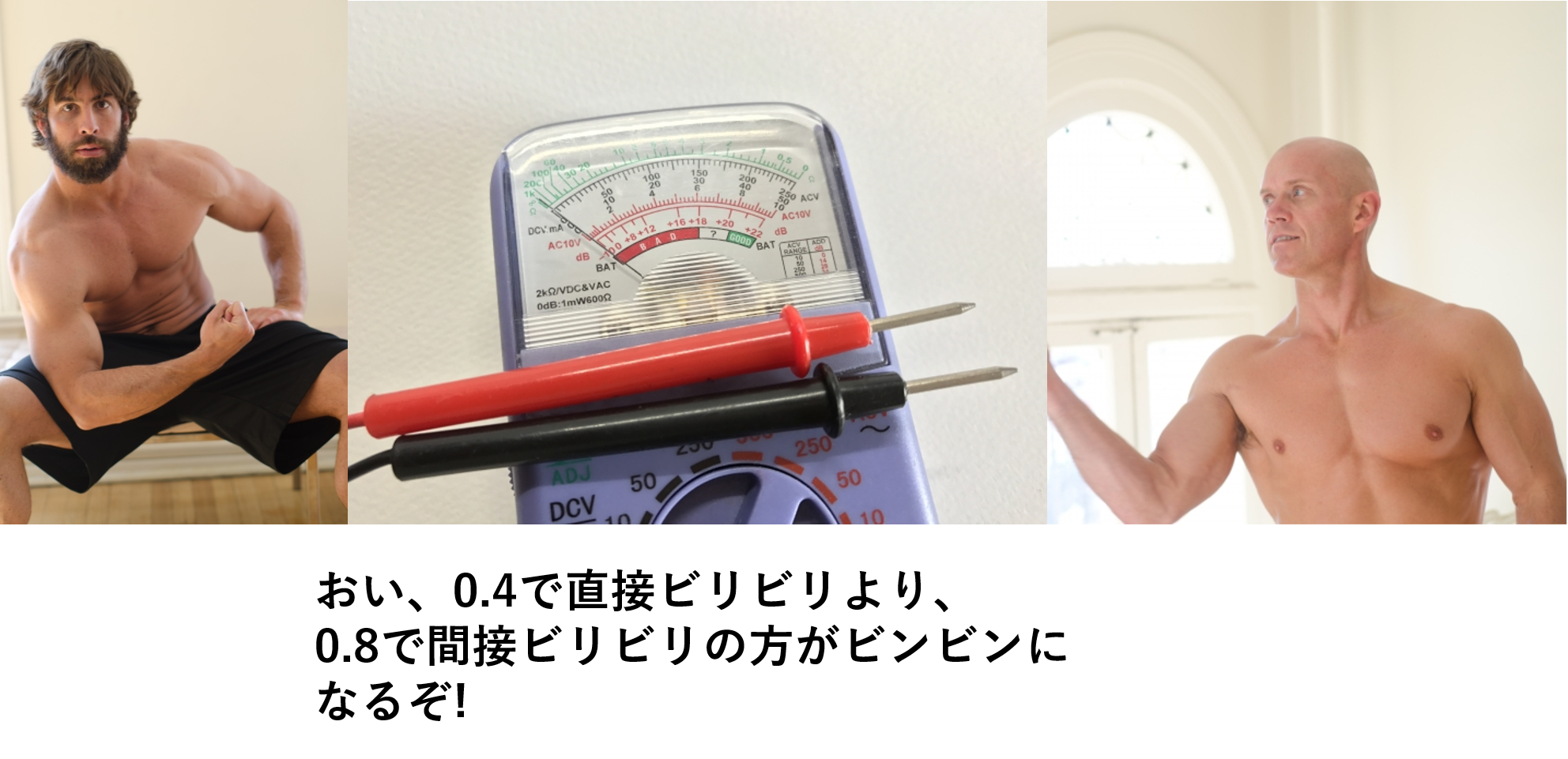 おい、0.4で直接ビリビリより、0.8で間接ビリビリの方がビンビンになるぞ!