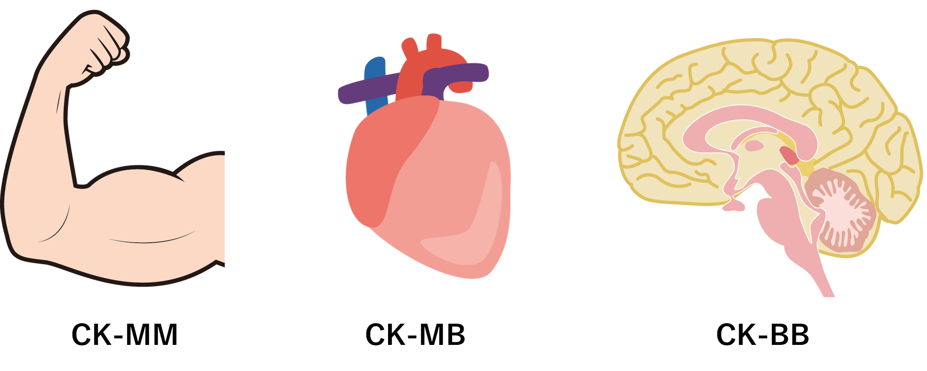 クレアチンキナーゼには3種類のアイソザイムが存在します。アイソザイムとは、同じ酵素の働きはするけれども、分子構造などが異なる酵素群のことです。正確には違いますが、イメージとしては、スライ〇、スライ〇ベス、ぶちスライ〇みたいなものです。